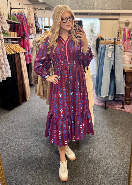 Burgundy Floral Button Down Dress