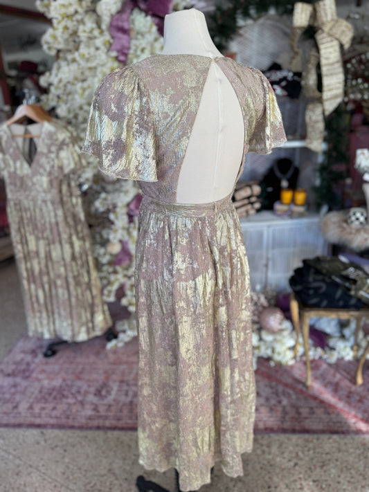 Gold Plisse Backless Midi Dress