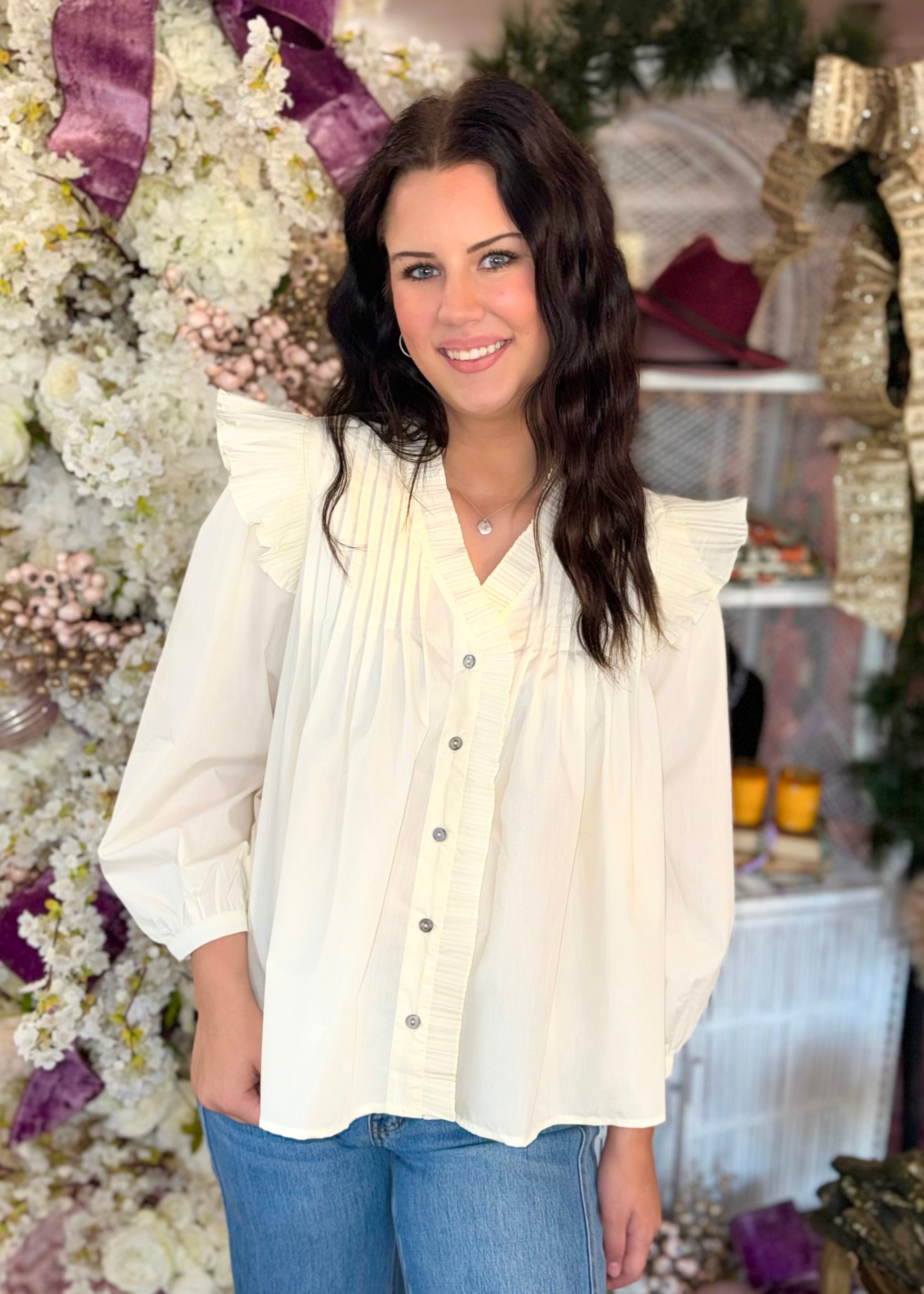 Cream Pleated Detail Top